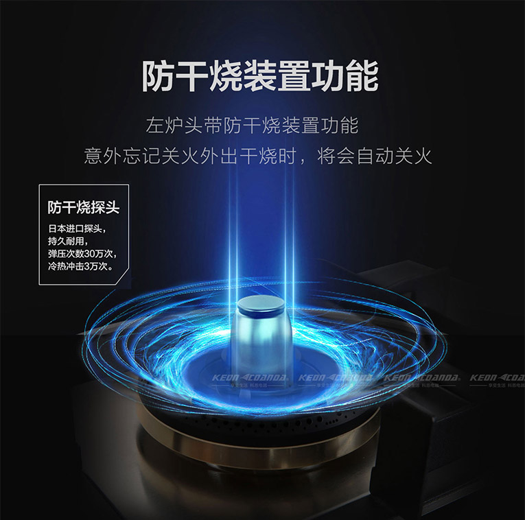 在安全方面,集成灶十大品牌、廚電行業(yè)十大品牌科恩KN610燃?xì)庠钸€擁有防干燒裝置功能,日本進(jìn)口探頭設(shè)計(jì),意外忘記關(guān)火外出干燒時(shí)將會(huì)自動(dòng)關(guān)火,溫控探頭檢測(cè)不到鍋具離鍋60S自動(dòng)熄火,時(shí)刻保衛(wèi)烹飪安全。