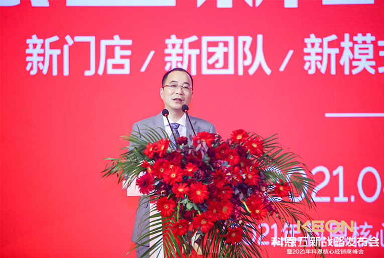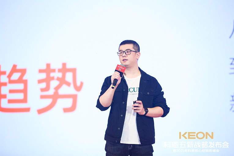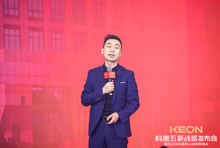 這一切成功的背后,除了有一支優秀的鐵血團隊,還有各地經銷商家人的支持陪伴,更重要的是有一位領航人不斷地探索。科恩電器董事長俞鋒上臺致辭,宣布峰會正式開始,“打造新科恩、重塑新科恩,再創科恩黃金十年”這一堅定目標和信念,伴隨洪亮的嗓音響徹全場。