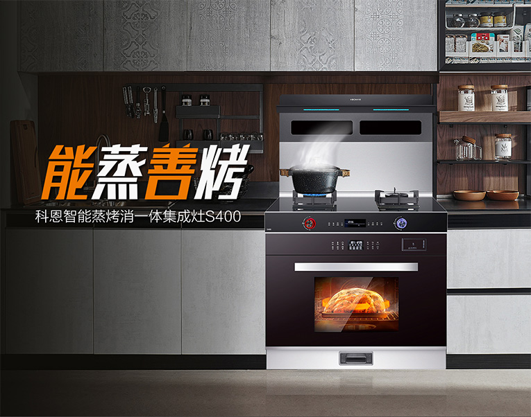集成灶十大品牌、廚電行業十大品牌科恩S400智能語音蒸烤消一體集成灶,大容量可一次蒸一大桌美食,360℃全方位蒸汽對流,頂部微晶玻璃體發熱、底部陶瓷加熱盤,雙孔蒸汽噴射,使食物受熱更均勻,只需20分鐘就能搞定豐盛的菜肴。科恩S400智能語音蒸烤消一體集成灶不僅能蒸、還能烤,相對于傳統的炭火烤制,使用科恩集成灶更為健康,4D熱風循環烘烤,腔體熱風均勻覆蓋美食,達到外焦里嫩的酥脆效果。