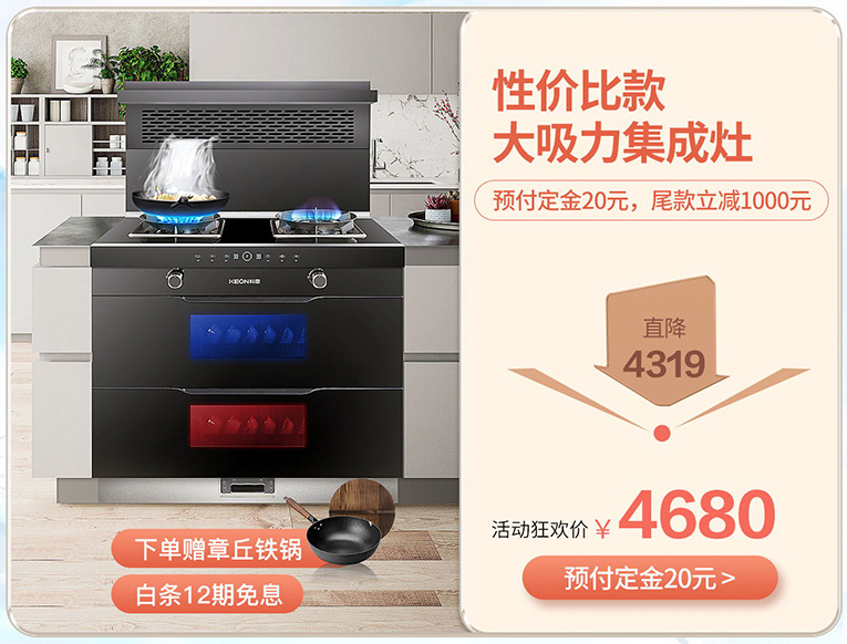 集成灶十大品牌、廚電行業(yè)十大品牌科恩集成灶雙11購物狂歡節(jié)火熱進行中,鉅惠多重禮,助力您的愿望一一實現(xiàn)!