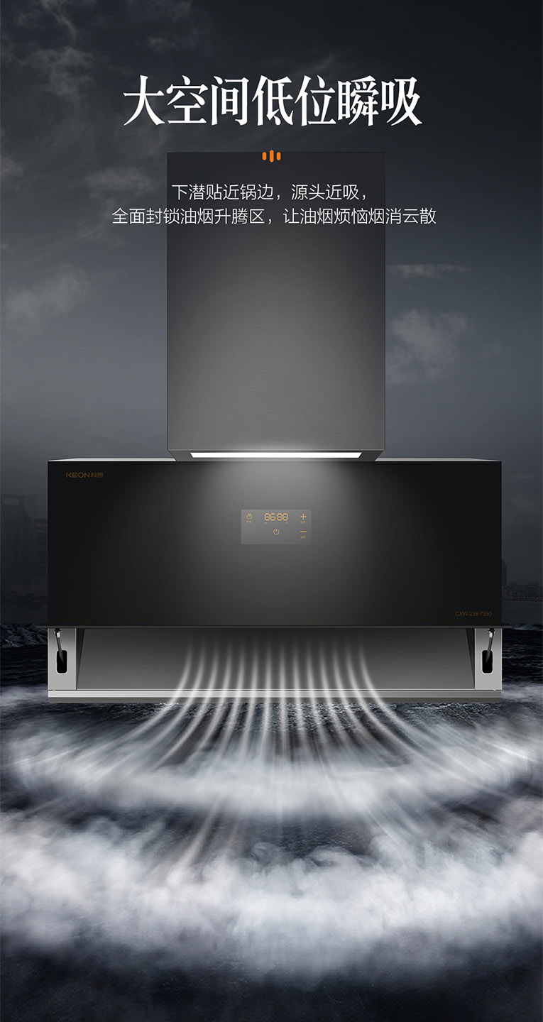 另外,科恩新一代7350變頻大吸力煙機擁有智能語音+揮手操控功能,智能語音聲控自由,呼喚“你好小科”可控制煙機,揮手調檔,紅外線隔空體驗操控,開機+排煙,揮手即凈,不油膩,同時還搭載60S延時關機功能,吸盡熱鍋余煙,人離也能凈油煙。
