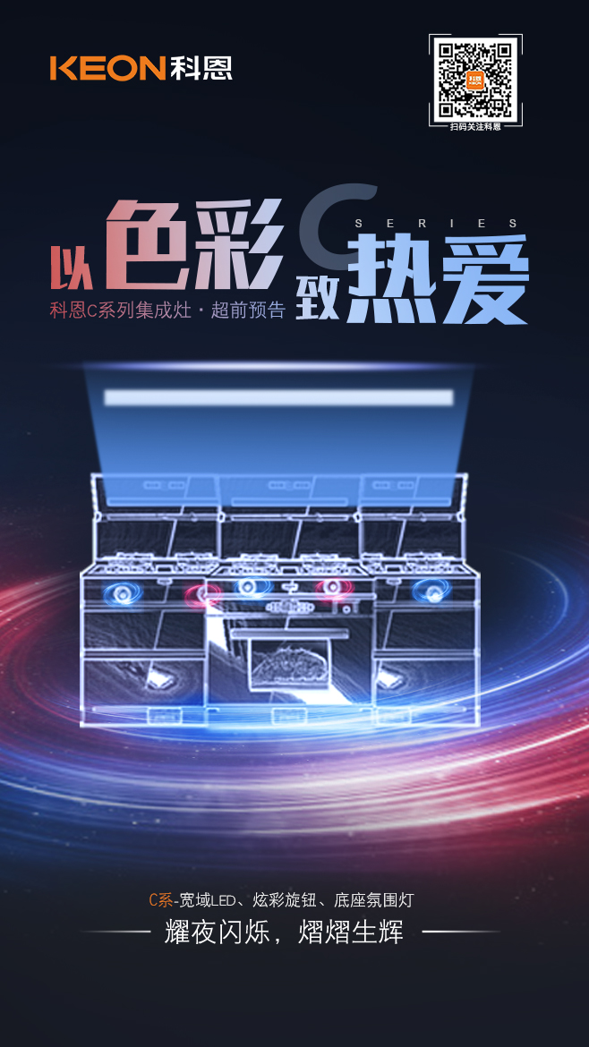 一眼,鮮明,再睹,目不轉(zhuǎn)睛,科恩C系集成灶,打破常規(guī)邊界,同向而行以色彩致熱愛,將無限溫柔與浪漫一并贈予你!