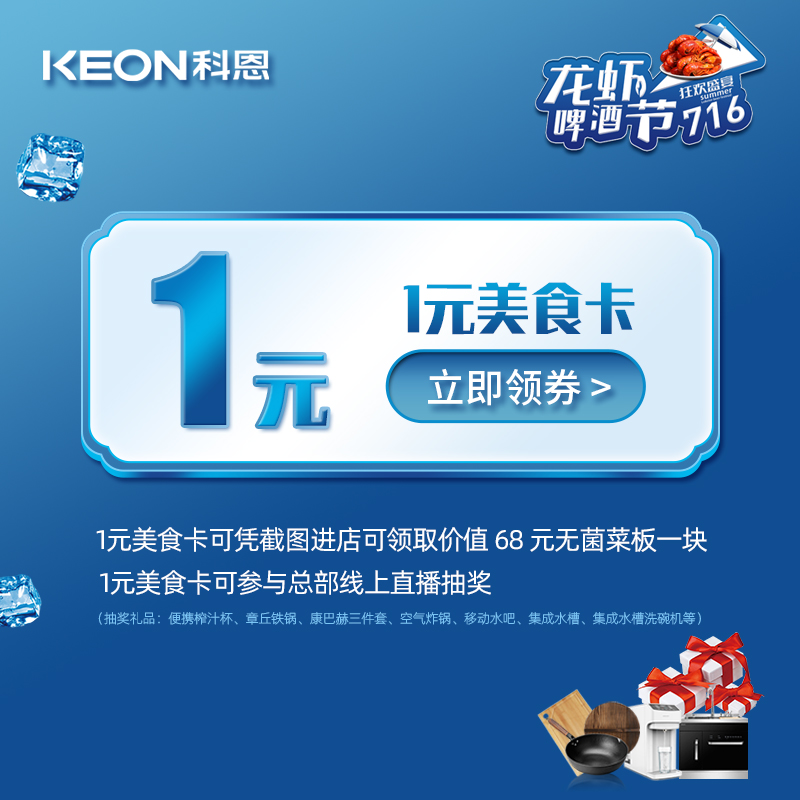 這還不夠,7月16日14點(diǎn),716直播大抽獎(jiǎng)準(zhǔn)時(shí)開播,活動(dòng)期間,凡購買1元美食特權(quán)卡用戶不僅可憑截圖進(jìn)店領(lǐng)取價(jià)值68元無菌菜板一塊,還可參與716總部線上直播大抽獎(jiǎng),看直播中大獎(jiǎng),便攜榨汁杯、章丘鐵鍋、康巴赫三件套、空氣炸鍋、移動(dòng)水吧、集成水槽、集成水槽洗碗機(jī)等海量豪禮抽不停!科恩寵你,不講道理!