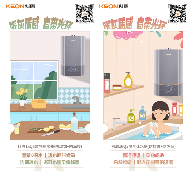 智浴恒溫,安心暢洗零等待!科恩16Q5零冷水燃氣熱水器,給你和家人最貼心的沐浴體驗!