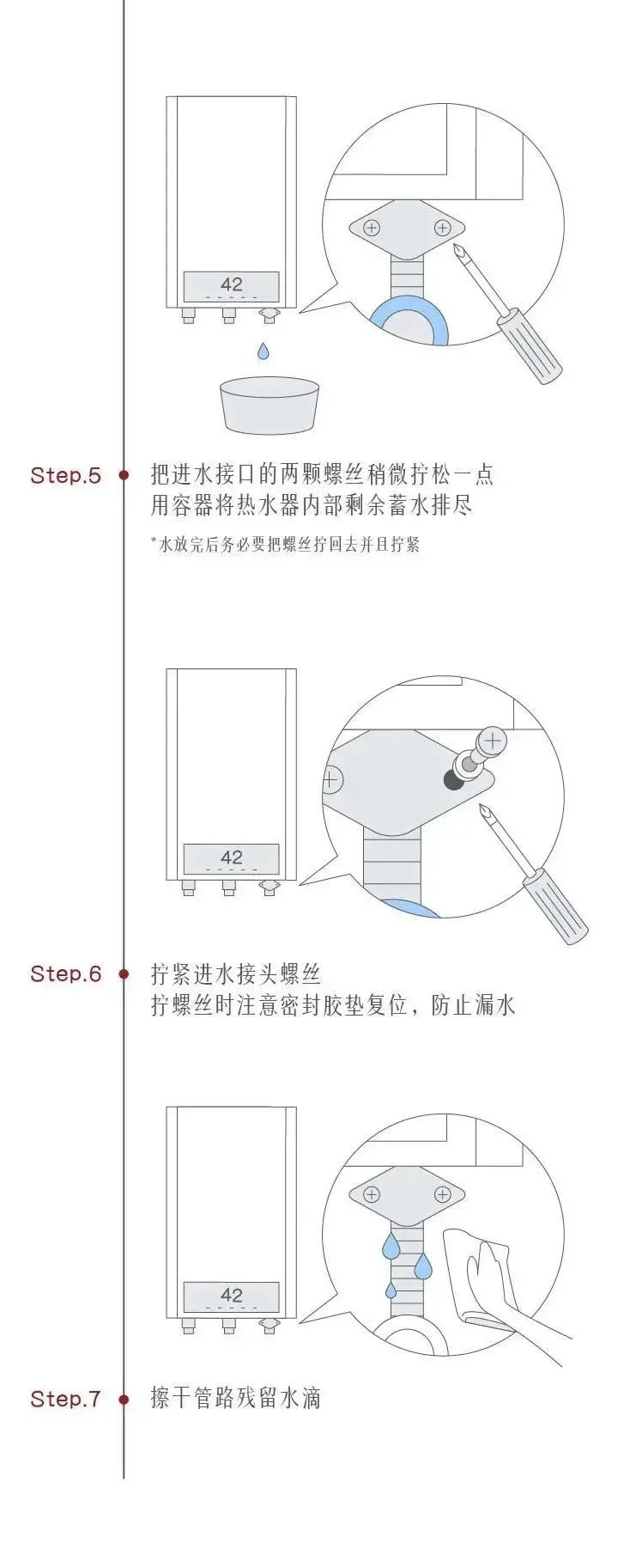 寒冬已至!當室外溫度低于0℃時,使用完熱水器后,若不及時將熱水器里的水排干凈,冷空氣變會倒灌進熱水器內部,水結冰后體積膨脹,容易凍壞熱水器水箱,造成不必要的麻煩和損失!因此,做好熱水器的防凍措施非常有必要!關于熱水器會被凍裂這件事,可能很多人都不會在意,為了讓大家能更好的了解熱水器如何防凍,這份防凍指南,你必須get!