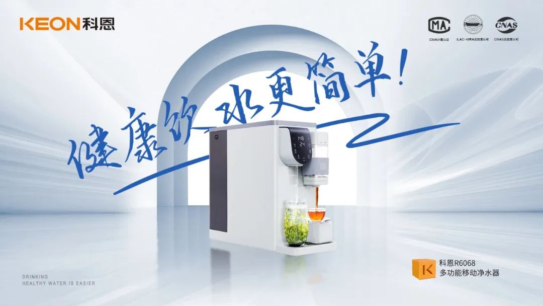 科恩R6068移動水吧,采用RO四膜七級精濾技術,搭載UV抑菌功能,水質通過中國CMA106項水質標準檢測,遠超發達國家的飲用水標準(歐盟水質安全檢測僅48項、美國水質安全檢測僅69項)。