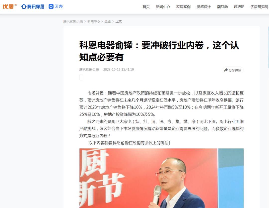 市場內(nèi)卷有兩個比較明顯的標記,一個標記就是價格被不斷揭穿底線;另外一個標記就是增量客戶不斷消失,大家都開始去做存量市場。這兩個標記在廚電行業(yè)已經(jīng)很明顯。