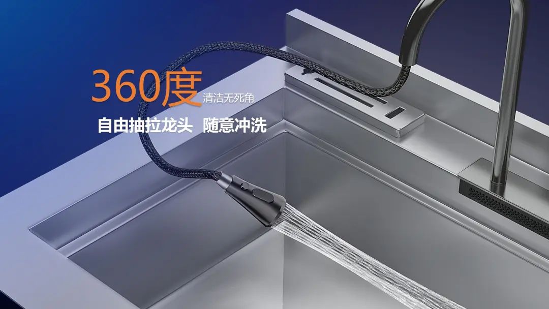 科恩X6L貼心設(shè)置抽拉式水龍頭,可實(shí)現(xiàn)360度無死角清洗。