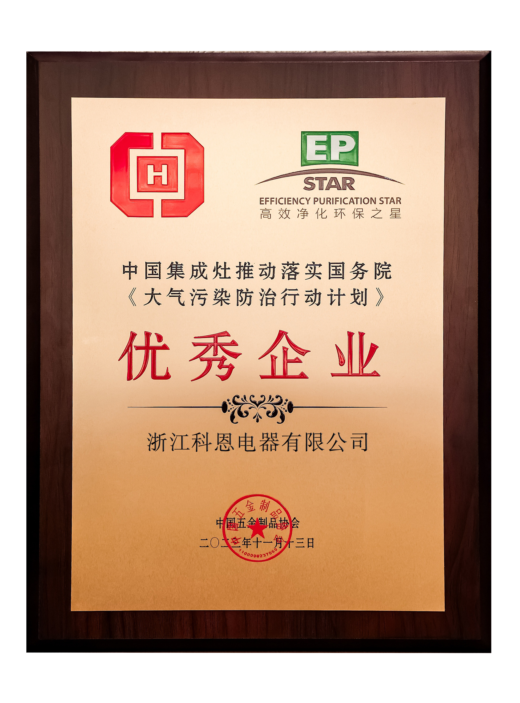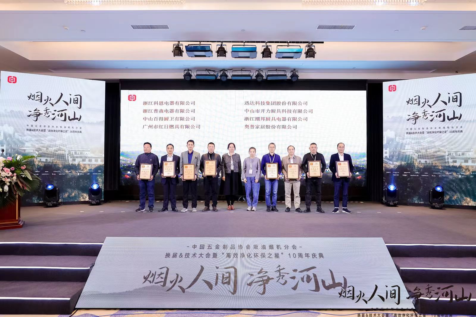 2023年11月28日,主題為“煙火人間 凈秀山河”有中國(guó)五金制品協(xié)會(huì)召開(kāi)的“中國(guó)五金制品協(xié)會(huì)吸油煙機(jī)分會(huì)·換屆&技術(shù)大會(huì)暨‘高效凈化環(huán)保之星’10周年慶典”在杭州隆重舉辦。會(huì)上發(fā)布了獲得本屆“高效凈化環(huán)保之星”的優(yōu)秀企業(yè),并向多年來(lái)連續(xù)參與此項(xiàng)目并表現(xiàn)突出的企業(yè)給予了嘉獎(jiǎng)。科恩再一次榮獲“中國(guó)五金制品協(xié)會(huì)-理事單位”及“中國(guó)集成灶推動(dòng)落實(shí)國(guó)務(wù)院《大氣污染防治行動(dòng)計(jì)劃》-優(yōu)秀企業(yè)”!