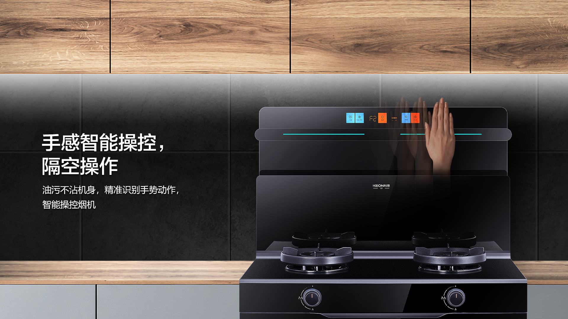 同時(shí),還貼心設(shè)置體感功能,揮手即可操控集成灶,避免了面板都是手指油污的尷尬。