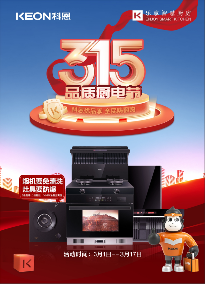 科恩“315品質廚電節”正在火熱進行中,全國千城萬店齊獻7重好禮,只為帶給您全新高品質廚房生活。