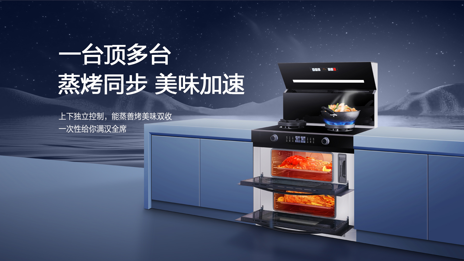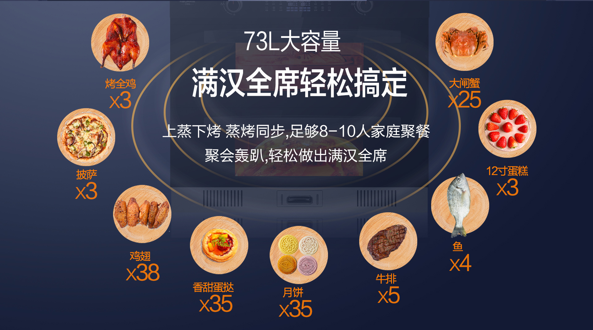 科恩C300L采用上蒸下蒸烤的方式,完美實現蒸烤同步,開啟倍速烹飪生活。