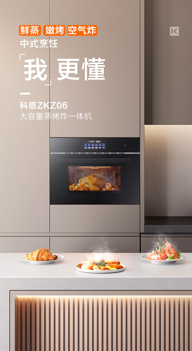 其次,科恩ZKZ06嵌入式蒸烤一體機(jī)除了傳統(tǒng)的蒸煮和烘焙功能外,還兼具空氣炸、保潔、烘干等功能,極大地方便了用戶的日常生活。這也意味著,用戶不再需要購買其他種類繁多的小家電,從而節(jié)省了大量的空間資源,提高了生活效率。