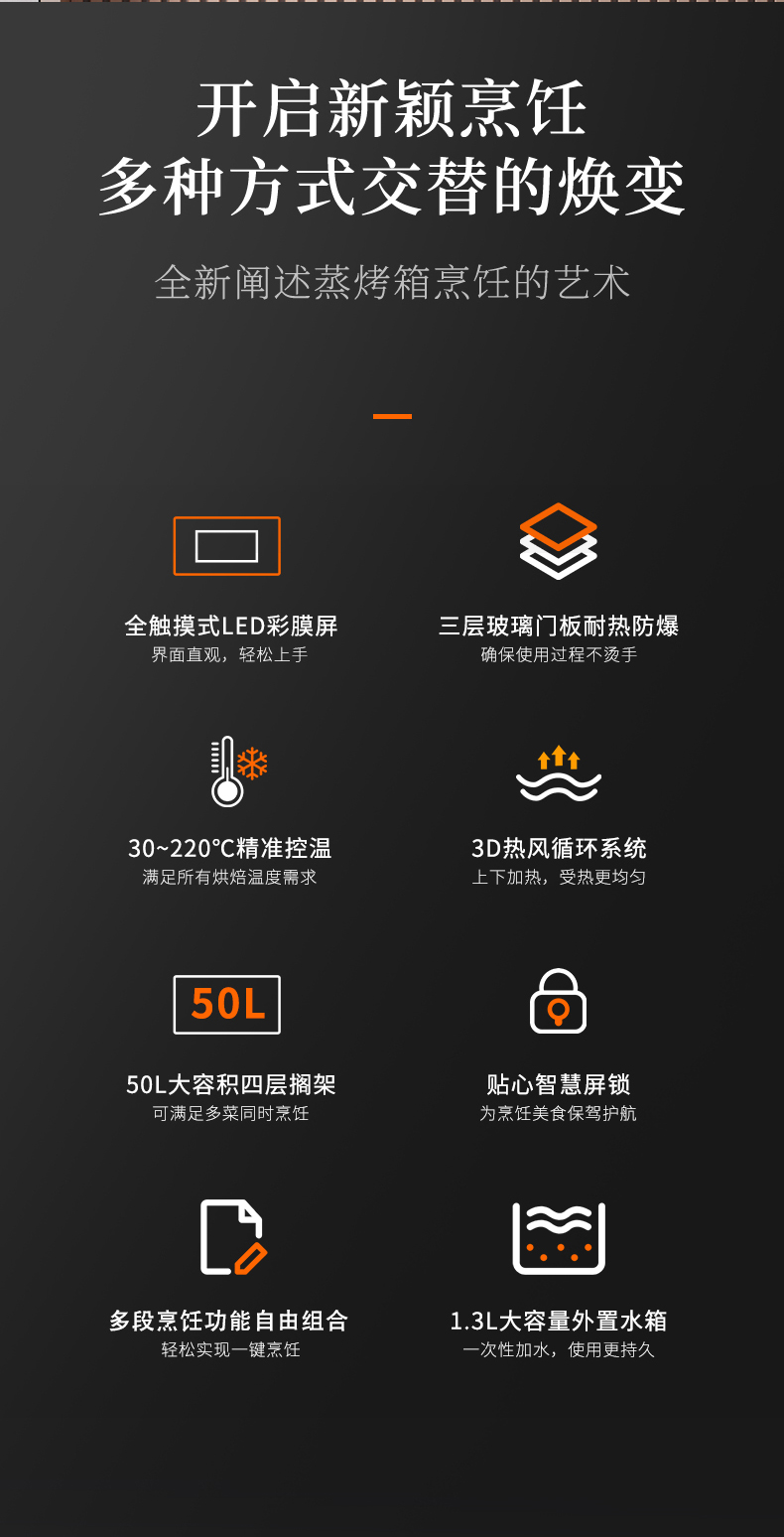 最后,科恩ZKZ06嵌入式蒸烤一體機(jī)擁有50L大容積四層擱架,可滿足多菜同時烹飪。