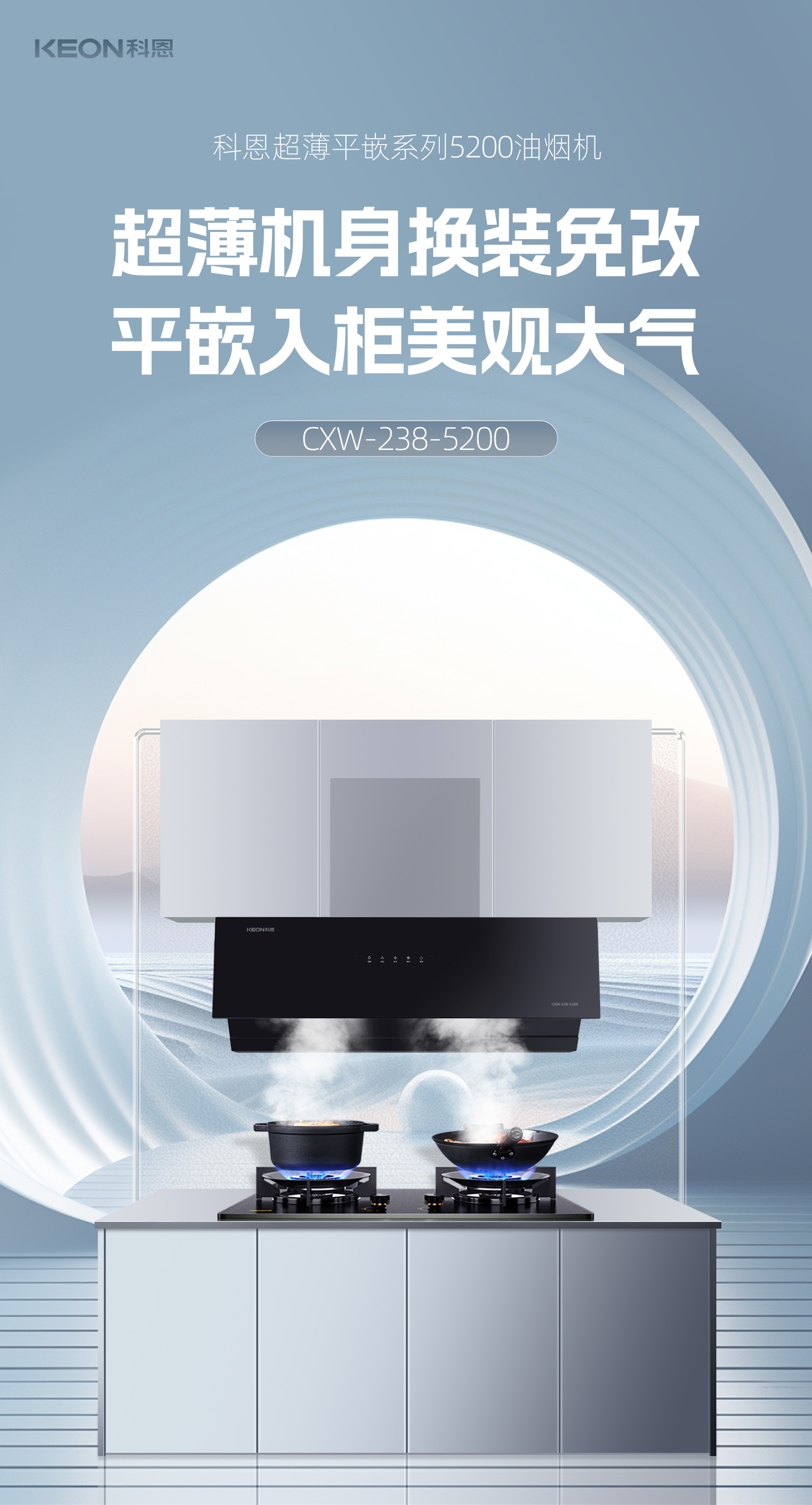 2024年,超薄煙機忽然躍入大眾視野,成為廚房主流之選,各大品牌也相繼推出超薄煙機。日前,科恩超薄煙機系列也再添成員5200。