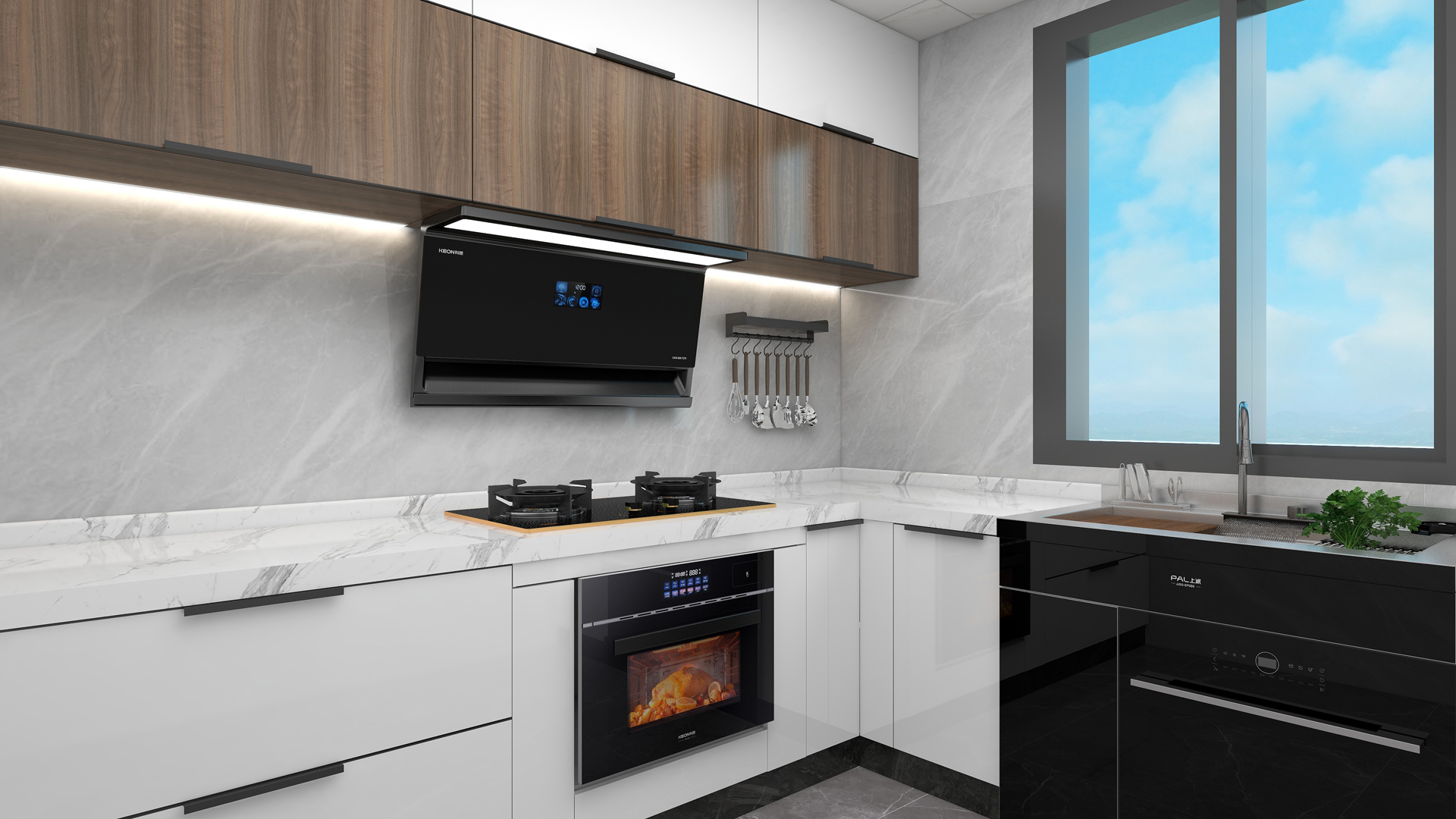 7270 煙機采用幻影黑面板,磨砂啞光質(zhì)感細膩柔和,不僅抗指紋耐刮擦,始終保持光潔如新,還能完美適配多種廚房裝修風(fēng)格,為廚房增添時尚格調(diào)。2.5cm 纖薄機身,與櫥柜邊緣齊平,告別傳統(tǒng)煙機的笨重感,釋放更多空間,讓你自在顛勺,盡情享受烹飪樂趣,再也不用擔(dān)心碰頭。