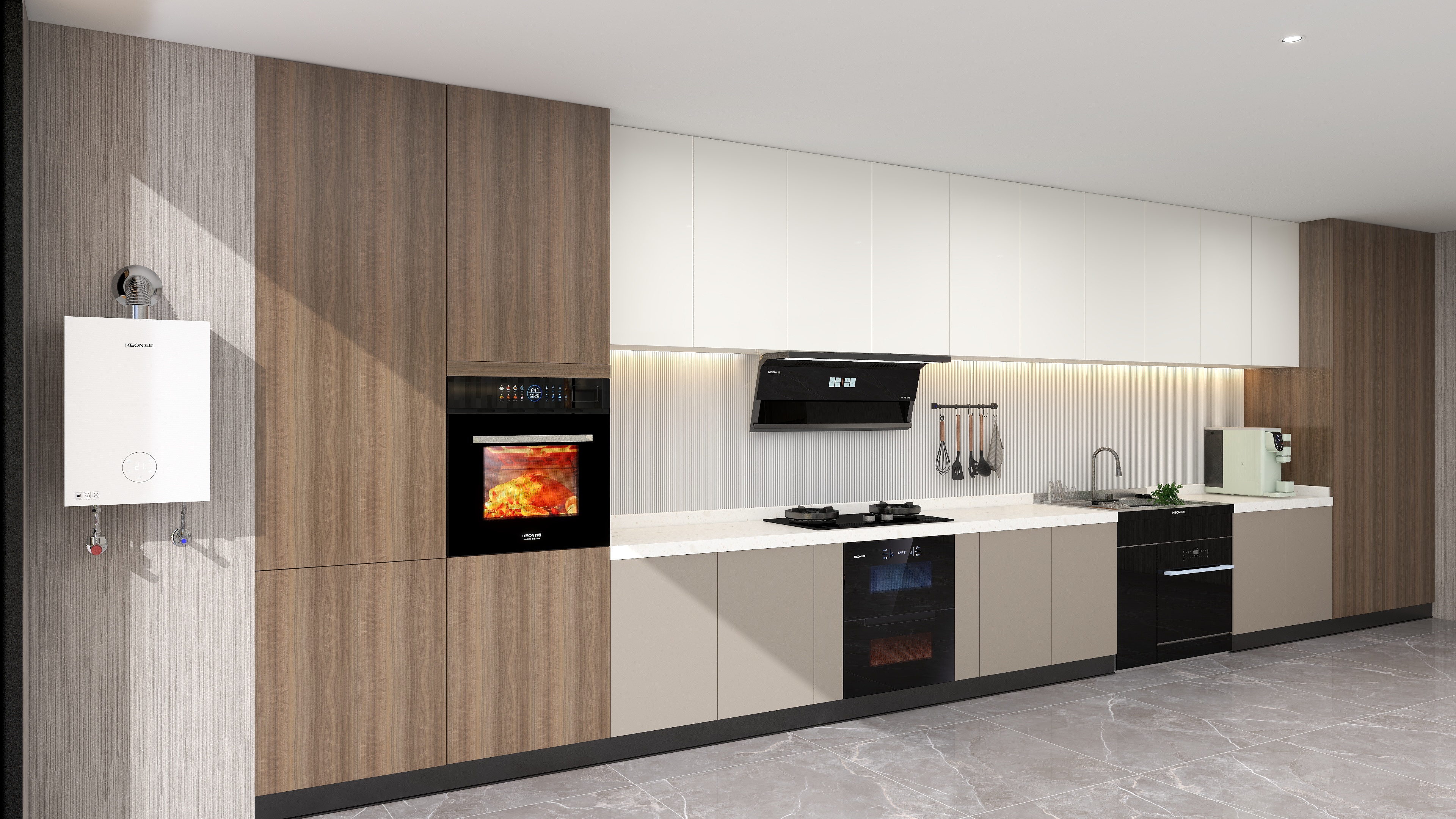 輕薄高顏,廚房煥新。2.5cm纖薄機身,空間不擁擠,冰川灰鑲邊,氣質(zhì)獨一檔,120° 天鵝頸設計,視野開闊,IP67級大燈,照明無死角,科恩7810煙機,烹飪更舒心。