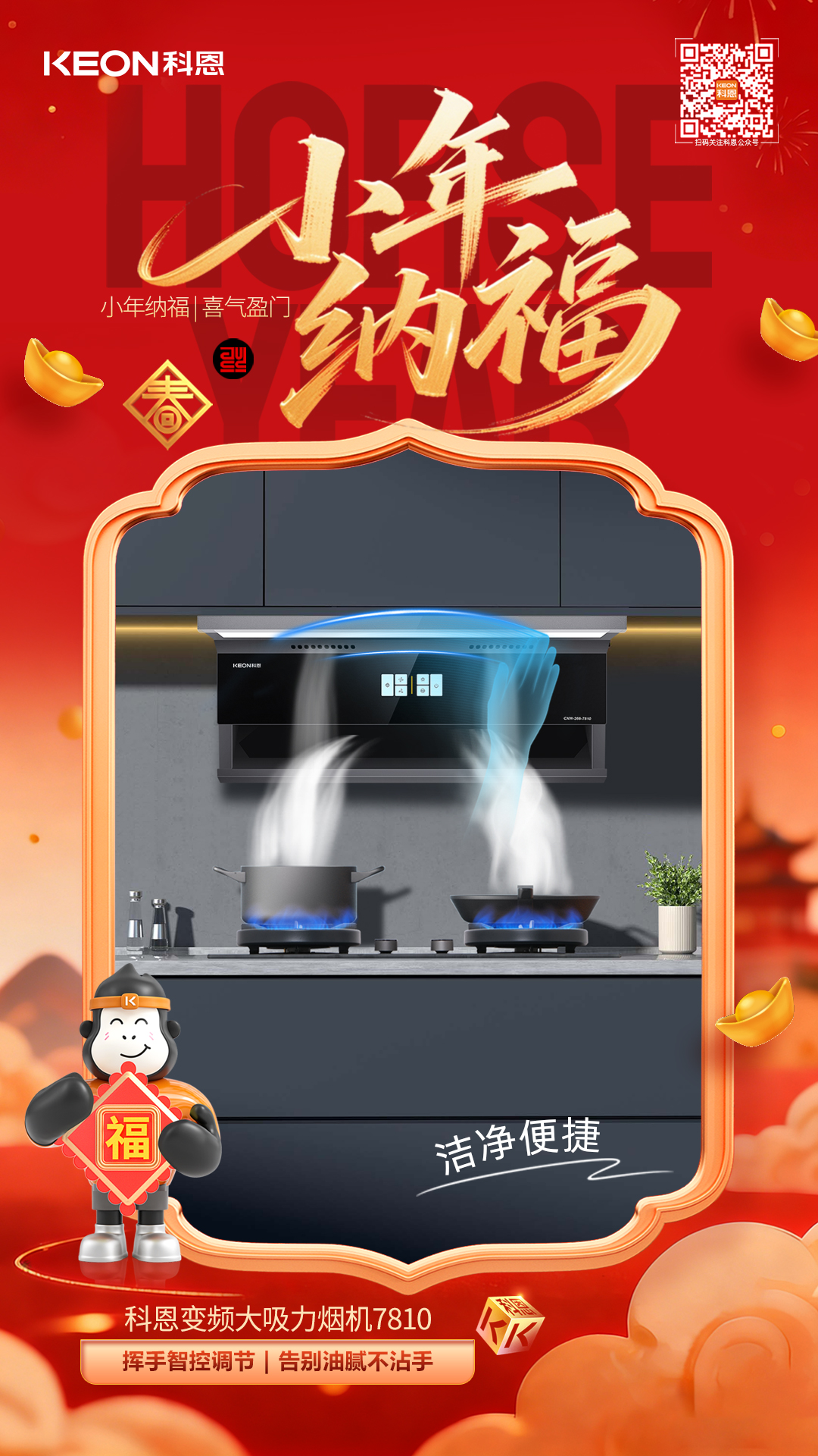 小年祭灶祈安康,科恩7810煙機(jī)以凈煙實(shí)力守護(hù)團(tuán)圓之美。它讓廚房告別油煙困擾,以顏值點(diǎn)亮家居,用智能簡(jiǎn)化操作,用健康貫穿始終。這個(gè)小年,讓科恩煙機(jī)陪伴你洗凈舊塵、烹煮佳肴,在清新潔凈的廚房中,迎接福氣滿盈的新春。