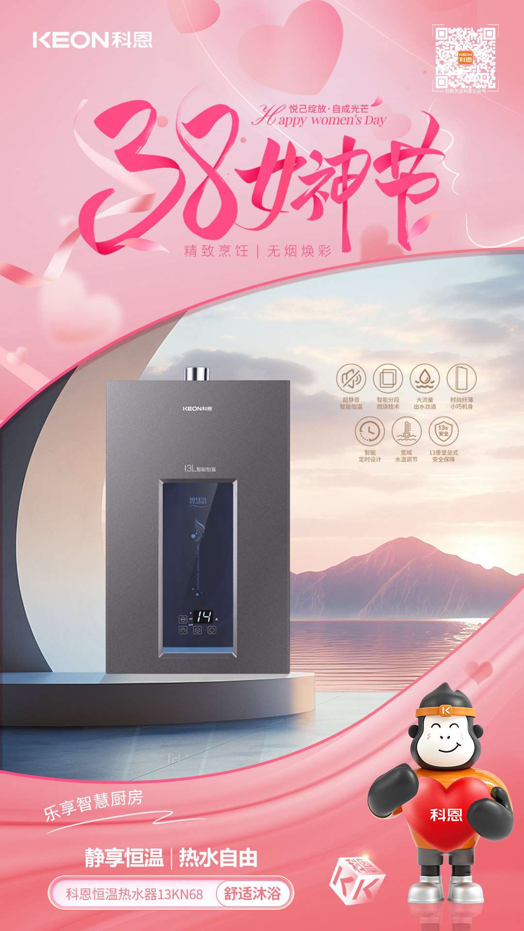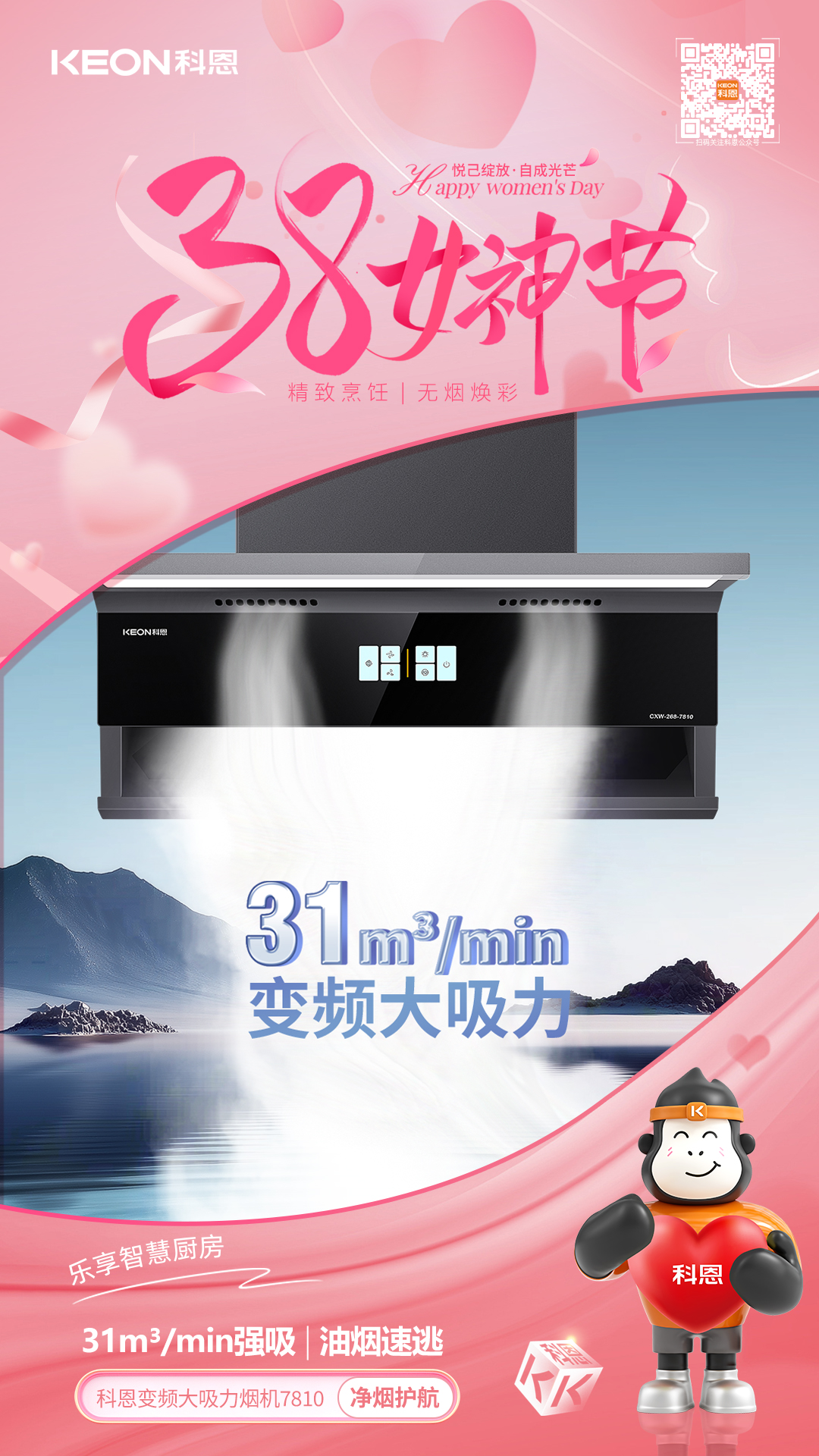 從凈煙護(hù)航到火候隨心,從恒溫守護(hù)到安全無(wú)憂(yōu),科恩以科技為翼,賦能女性品質(zhì)生活。不定義她的角色,只守護(hù)她的熱愛(ài),不辜負(fù)她的付出,只給予貼心呵護(hù),這個(gè)婦女節(jié),讓科恩與你一起,讓廚房成為從容主場(chǎng),讓生活滿(mǎn)是溫柔光芒!愿每一位女性,都能在煙火氣中,活成自己喜歡的模樣,自在如風(fēng),優(yōu)雅綻放。