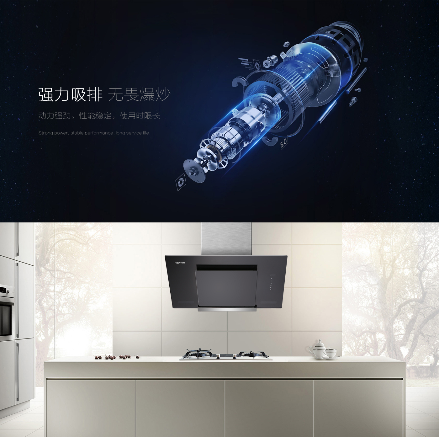 - 智能側(cè)吸變頻煙機,解決公共煙道烹飪高峰排煙難的問題。