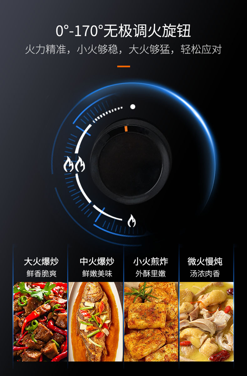 - 0°-170°無極調(diào)火旋鈕,火力大小精準(zhǔn)控制